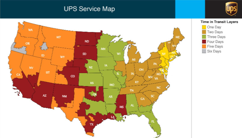 Here’s a breakdown of your shipping Time, according to the UPS Service Map :